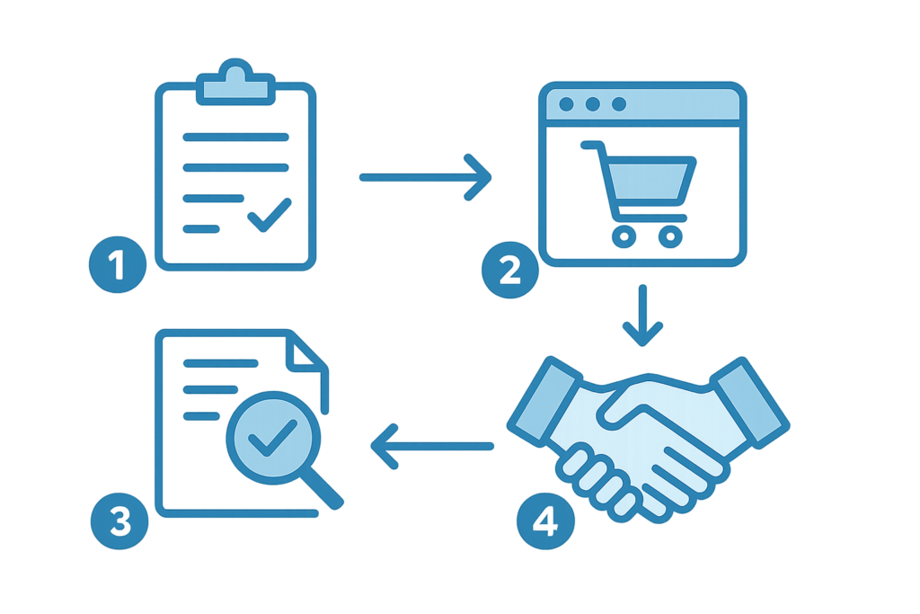 まずは、ECビジネス売却の流れを大まかに理解しましょう。以下の4ステップに分けられます。