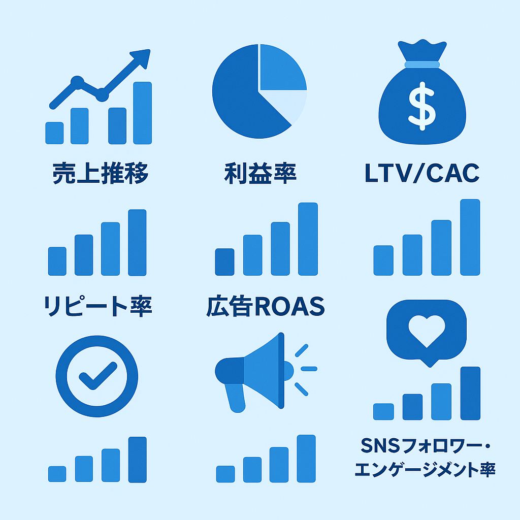 LTV(顧客生涯価値)やリピート率、広告効率、SNSやコミュニティのフォロワー数など、売却価格に寄与する指標は必ず提示しましょう。特に買い手が評価しやすい数値を具体的に提示できるかが鍵です。